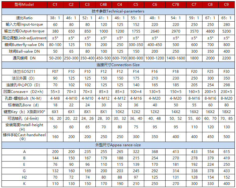 該系列蝸輪箱適用環(huán)境廣、功能全面、形式多樣(有手輪式、手輪帶鎖式、鏈輪式等),產(chǎn)品共有9種型號(hào)。